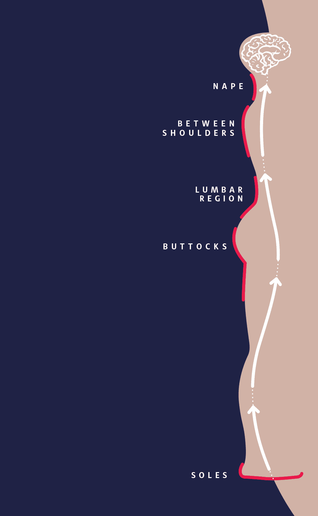 Perfectly covers the arches of the sole, the curve of the spine in the back and the back of the head.